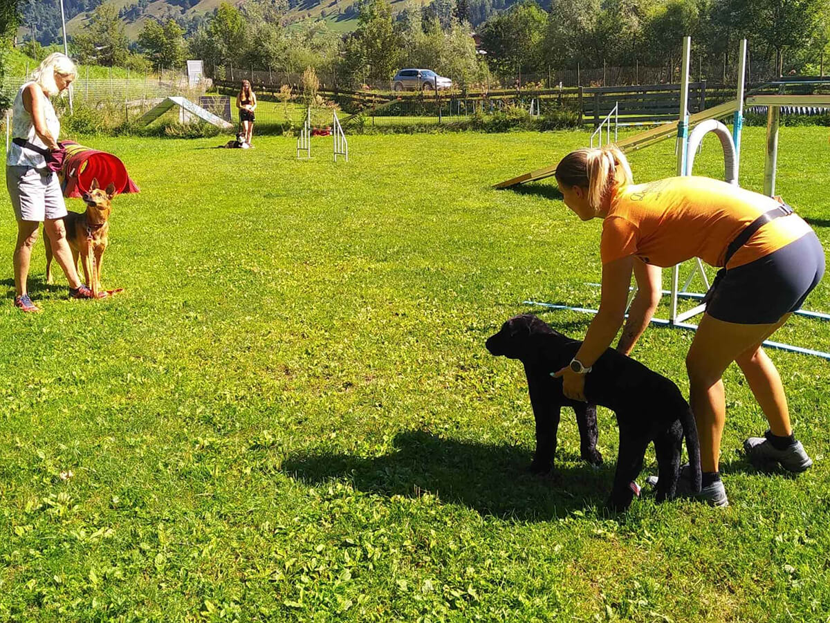 Die Hunde werden von den Teilnehmern organisiert und passend zu den Modulthemen eingeteilt. So lernst du, mit unterschiedlichsten Rassen und Lerntypen zu arbeiten – und das stets unter fachkundiger Anleitung. Damit jeder Hund konzentriert arbeiten kann, ist immer nur ein Hund am Trainingsgelände.